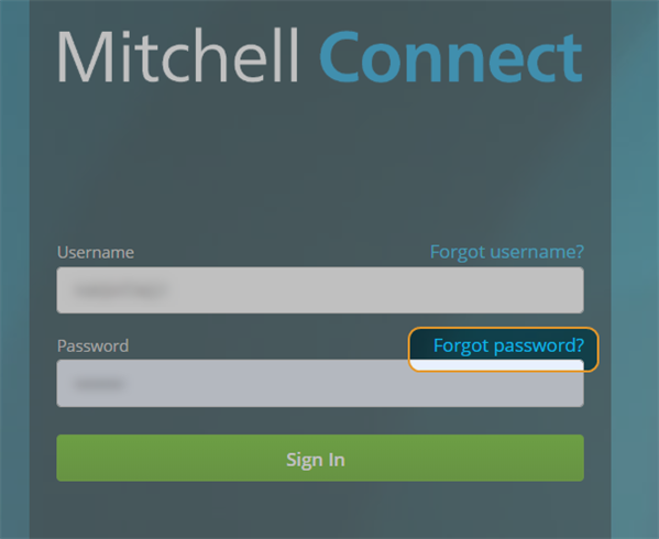 Use your current credentials (user name and password) to sign in to Mitchell Connect.