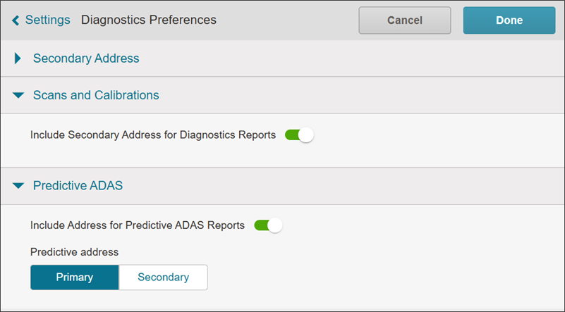 the Include Secondary Address for Diagnostics Reports toggle to include or exclude Secondary Address. -