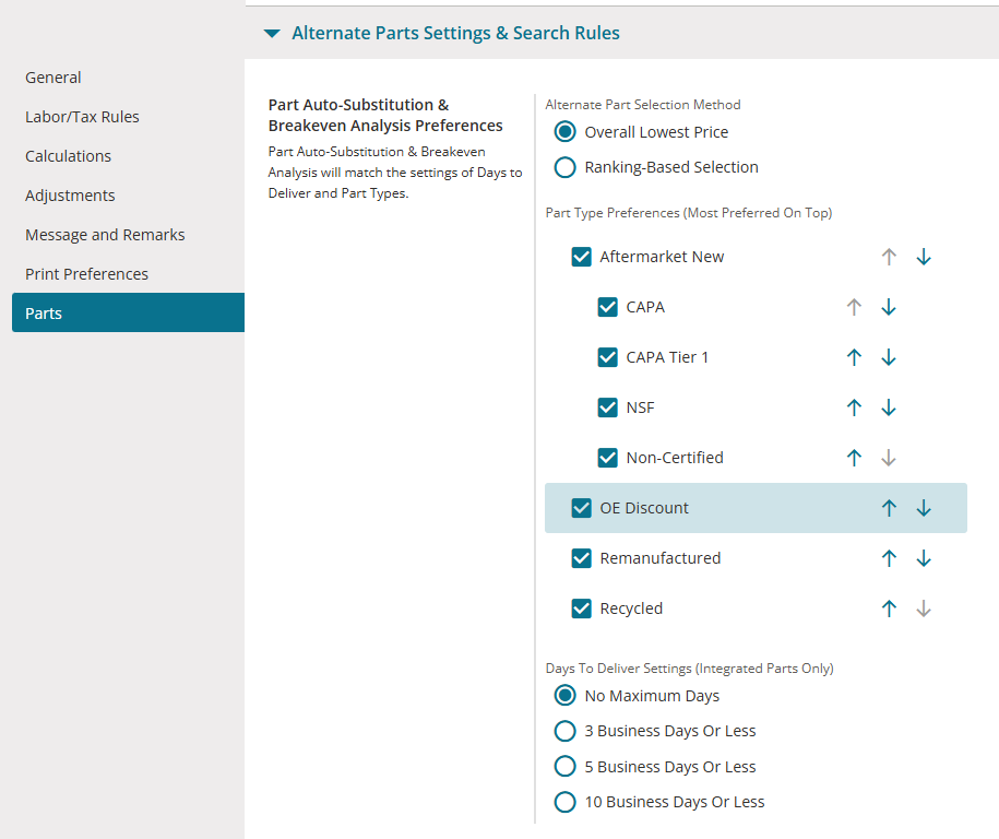 Use the Estimating section of the Settings page in Mitchell Connect to create or add a new estimate profile.