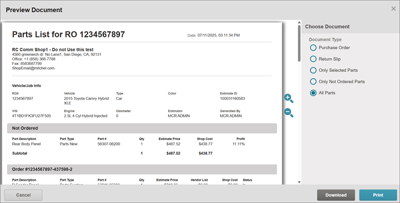Order Parts and Generate Parts List in Mitchell Cloud Repair