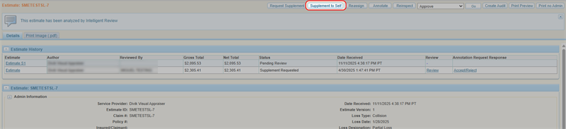 After you complete an estimate review, you can assign its supplement assignment to yourself.
