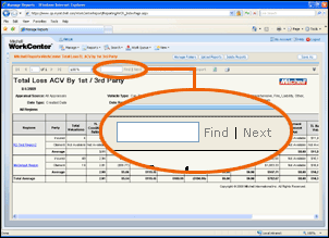 search for text in the report