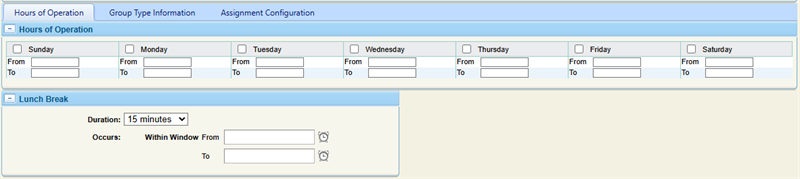 - On the New Group page, select the Hours of Operation tab.