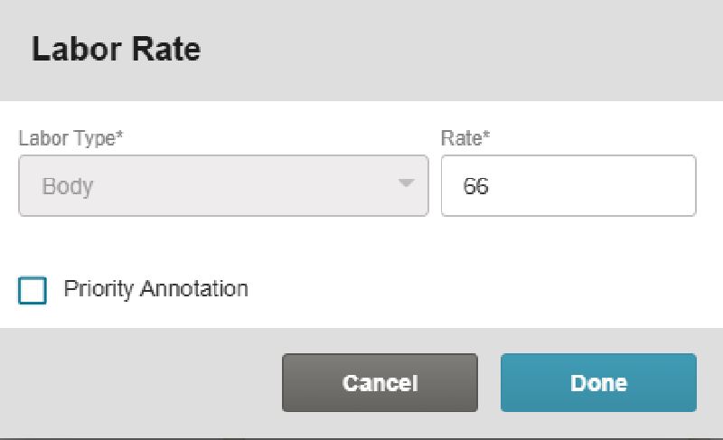 Select Priority Annotation to flag the change as a priority. This is flagged in Mitchell Cloud Estimating with a yellow flag icon that appears at the row level.