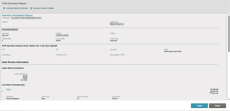 Summary: Shows only the labor rates and line items in the estimate that have been annotated.