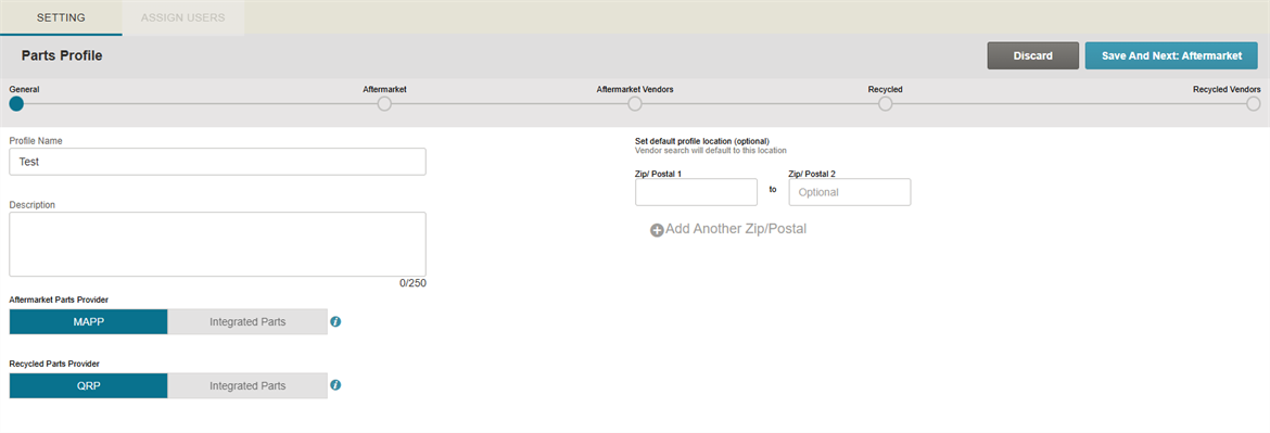 Note: The Aftermarket Part Vendor search returns a list of vendors that service the Zip/Postal Code or range provided.