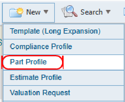 On the New menu in the navigation bar, select Part Profile.