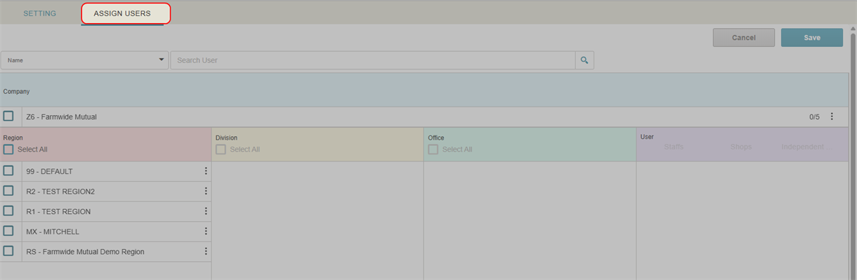 - Select the Assign Users tab to view the users you can assign to your part profile.