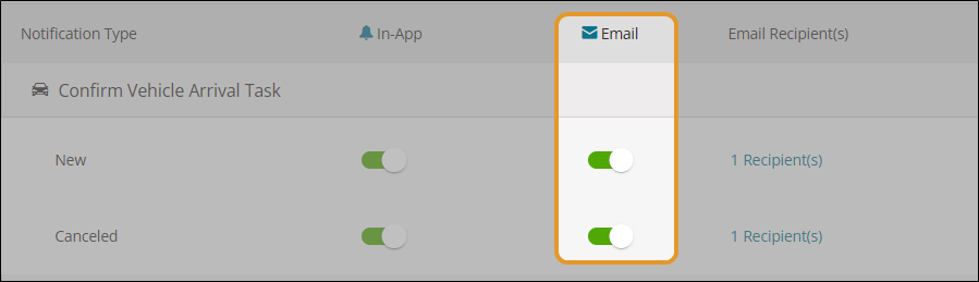 - In the Email Recipients column, select the link next to a notification type to add or remove email addresses.
