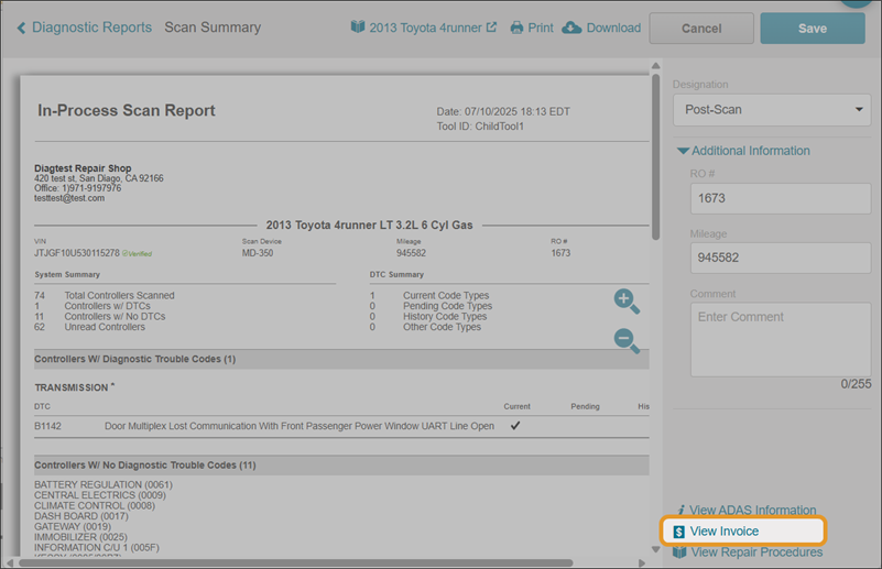 View an invoice for any diagnostics scan in Mitchell Connect.