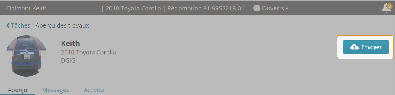 Utilisez la carte Estimation pour commencer à rédiger ou modifier des estimations à partir d’assignations d’évaluation reçues de la part de vos partenaires d’assurance.