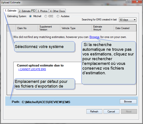 - If WorkCenter does not automatically display your estimates, click Browse to go to the location where your estimating software keeps its estimating files for export.