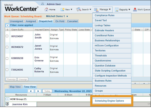 On the Manage menu, click Scheduling Engine Options.