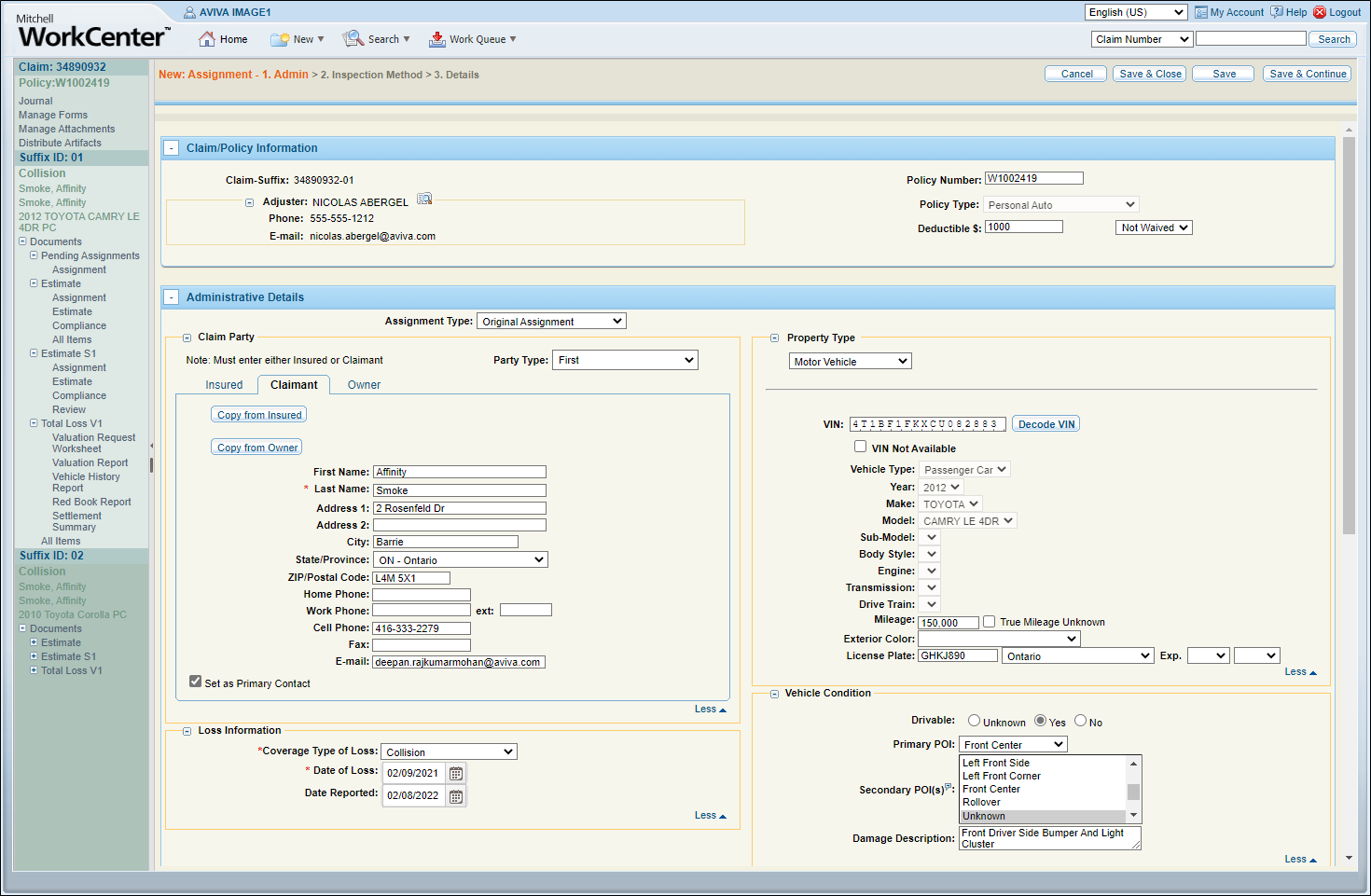 Enter/revise the claim's information as needed.