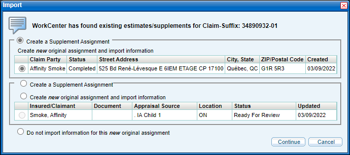 Note: You can also select Cancel if you do not want to import any existing information. If you do this, you will have to follow the steps to create a new assignment. See Create an Assignment for more information.