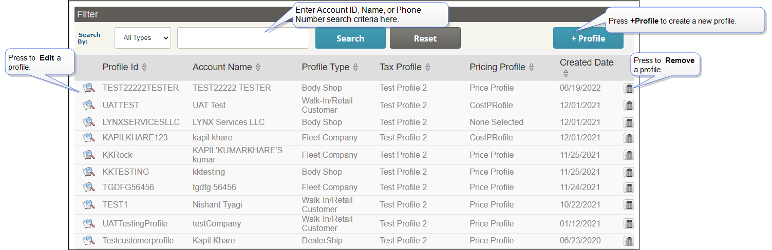 Use Account Profiles to search, add, edit, or remove Account and company Account profiles.